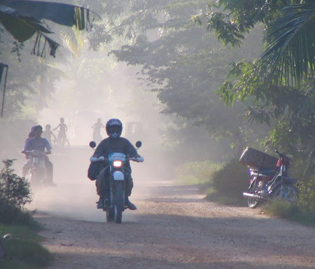 The sign in the background says ‘Chumnik Commune, Kampong Cham Province’. This place is about 15-20km south of Chhlong. The road around here is still unpaved yet in fairly good condition.